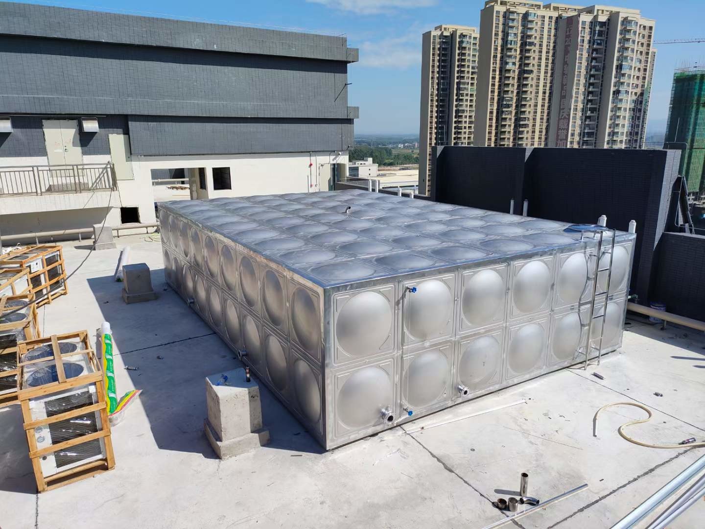不銹鋼水箱選用的是達(dá)到食品衛(wèi)生級(jí)的304不銹鋼板材,其化學(xué)性質(zhì)比較穩(wěn)定,對(duì)水體無污染既保持了水體的清潔衛(wèi)生,又很大程度的保證了人們?cè)谡I钪酗嬍车男l(wèi)生和健康。這種不銹鋼材質(zhì)不易銹蝕,不生青苔,耐腐蝕性好,且方便清潔,密封性好,更加的環(huán)保。冷熱水均可循環(huán)調(diào)節(jié),保溫的效果好。除此之外,不銹鋼水箱儲(chǔ)存容量比較大,可以輕松的解決大容量儲(chǔ)水問題。